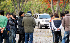 ソニックデザインのお客様向けミーティングイベント「ソニックデザイン リスニングキャンプ」が、早くも海外進(jìn)出を果たしました。去る2013年11月3日(日)、日本に次ぐハイエンド?カーオーディオのマーケットを持つ韓國(guó)で、弊社製品の正規(guī)輸入代理店「MS Audio」社の主催による「第1回 リスニングキャンプ韓國(guó)」が開(kāi)催されたのです。場(chǎng)所はソウル市近郊のオートキャンプ場(chǎng)?!弗悭螗驻盲啤ⅳ饯Δいσ馕钉袱悚胜い螭坤堡嗓省工去磨氓偿撙蛉毪欷郡胜霘莩证沥蛞证à茣?huì)場(chǎng)へ向かいます。