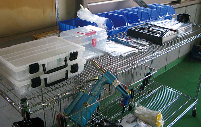 併設(shè)の専用取り付け工場「クイックピット」には4臺同時に作業(yè)可能な余裕あるスペースが確保され、インストーラー(作業(yè)者)と同じ數(shù)の大型作業(yè)カートやスポットエアコンも完備。工場內(nèi)にはセルフサービスのコーヒーを楽しみながら作業(yè)を見學(xué)できる休憩スペースがあるほか、建物のすぐ向かい側(cè)には大型溫浴施設(shè)の「松崎湯ったり苑」もあり、待ち?xí)r間を有効に活用できる。さらに代車の貸し出しサービスも実施しているので、新潟市內(nèi)の観光やグルメスポット巡りを楽しむのもいいだろう。